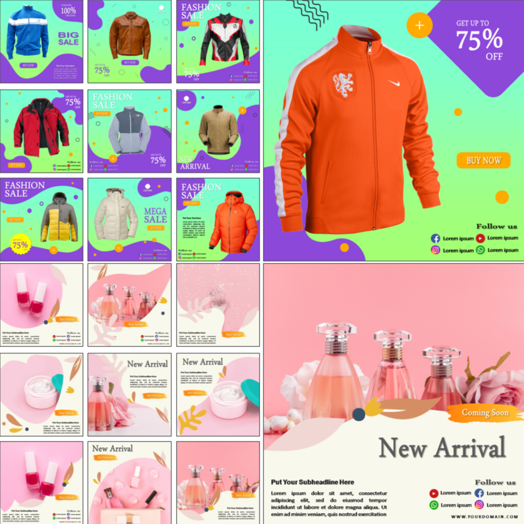 InstaPic merupakan template banner Instagram premium siap pakai yang terdiri dari berbagai niche yang dapat diedit dengan mudah menggunakan powerpoint saja. Dengan Gramdes, anda dapat dengan mudah membuat banner Instagram yang eye-catching untuk meningkatkan penjualan anda.