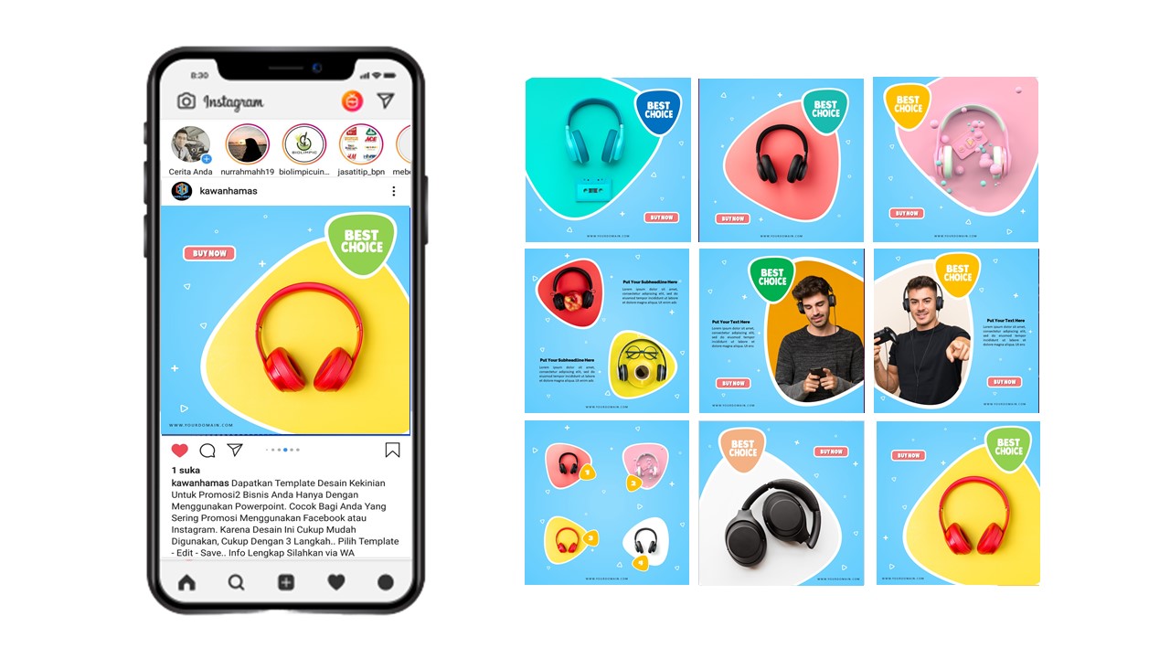 Tidak hanya banyak, tetapi semua template ini dibuat dengan menarik dan eye-catching, untuk menjadi stopping power bagi pengunjung Instagram anda.