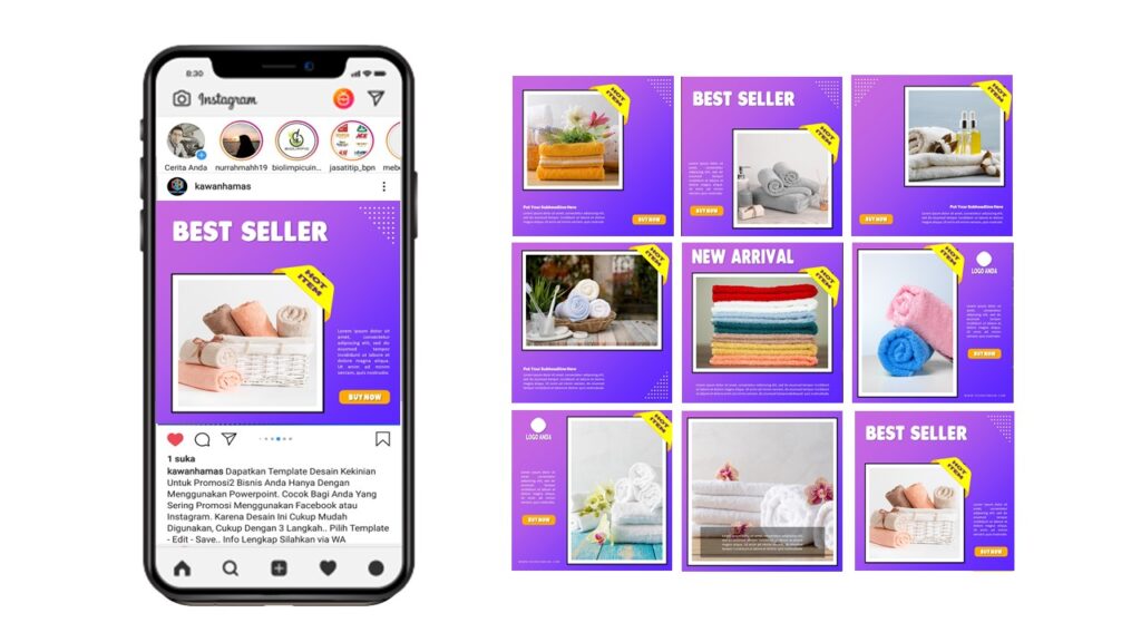 SocialPoster – InstaPic 450+ Template Desain Dengan Format Powerpoint Siap Edit Menyesuaikan Dengan Model Bisnis Anda Tanpa Tools Mahal Hanya Menggunakan Powerpoint Saja.